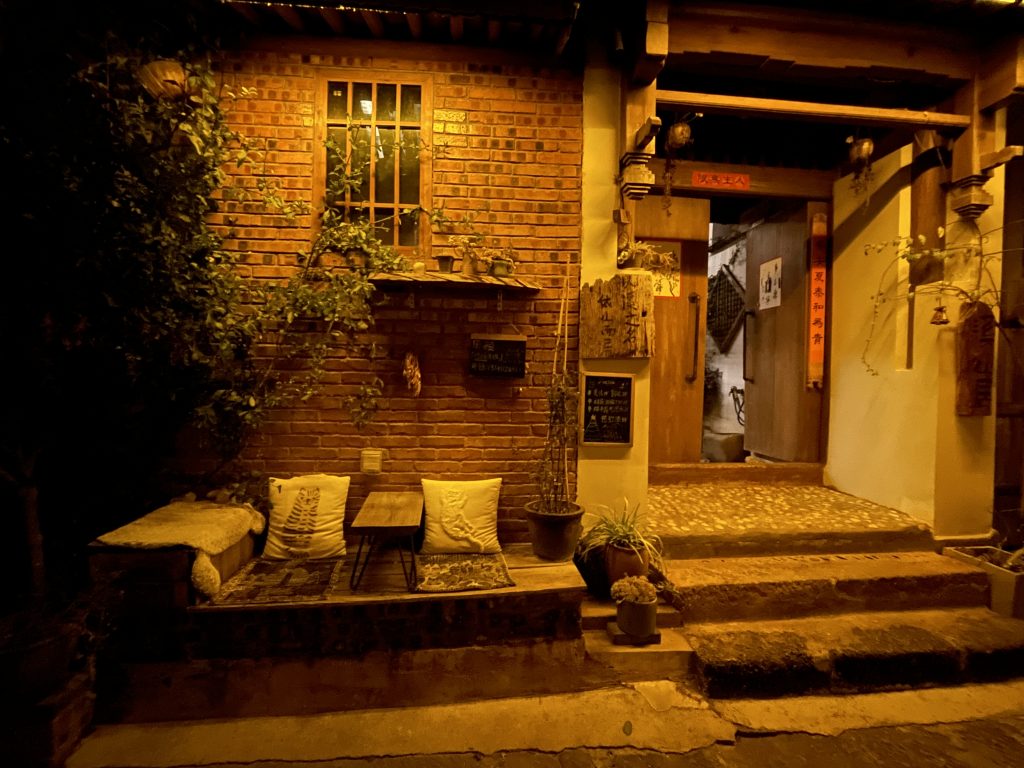 Shaxi liegt noch ein kleines Stück weiter in Richtung Himalaya-Hochebene. Es zählt zu Yunnan, und damit zum Süden Chinas, ist aber durch die Höhenlage ordentlich kalt. Wie kalt, wird uns in der ersten Nacht in unserem Hotel klar – einem wirklich hübschen Haus in einer Seitenstraße der Altstadt. Wir bibbern uns unter unseren Decken durch die Nacht, geben irgendwann auf und schalten die Klimaanlage auf „Heizfunktion, höchste Stufe“. Am Morgen sind es außen um die Null Grad Celsius. Es gibt Nudelsuppe zum Frühstück, natürlich draußen.
